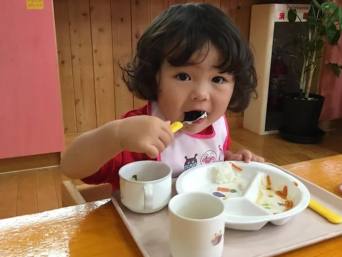 - おいしい手作りおやつをいただきます。おやつの後は遊びの時間です。