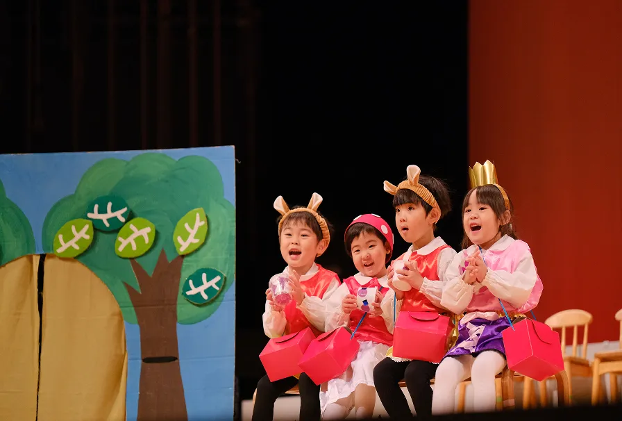 年長のオペレッタや年中・年少の劇は、題材やストーリーを子どもたちと考えながら進めます。