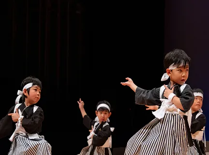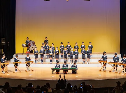 専門講師の指導も受け、発表会は文化センターや園舎など、それぞれの成長段階に応じた場所で行います。