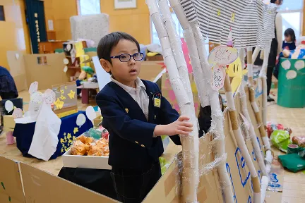 子どもたちは、様々な素材に触れ、友達と協力して物を作る喜びや達成感を味わい、他のクラスや学年の造形に刺激を感じ、大きな成長を見せてくれます。