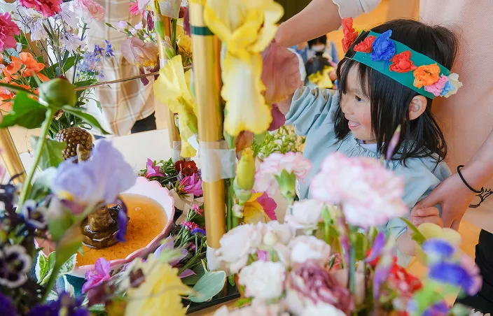 仏教に由来する「花まつり」「報恩講」を毎年行っています。各家庭から持ち寄ったお花で飾り付け、ご住職様をお招きして、お釈迦さまの教えや命の尊さを子どもたちに伝えています。