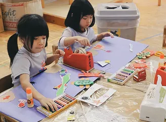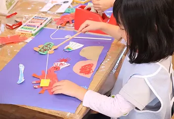 自分の思いを色や形で表現したり、さまざまな素材から「何になるかな」とイメージする。そんな造形あそびで想像力を発揮してもらいます。